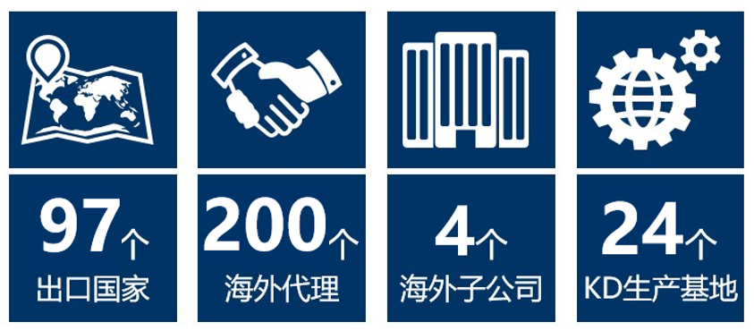截至2024年底,中國一汽海外業(yè)務(wù)已覆蓋歐洲、非洲、東南亞、中東、拉美等區(qū)域的97個國家和地區(qū),擁有海外經(jīng)銷商200余家。設(shè)有東歐、南非、坦桑等4家海外子公司,建有南非、坦桑等24個KD生產(chǎn)基地。