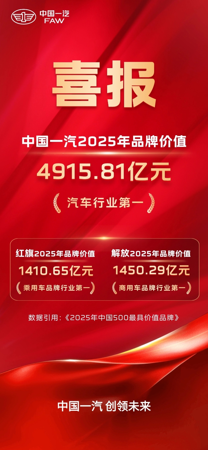 中國一汽上榜《中國500最具價(jià)值品牌》