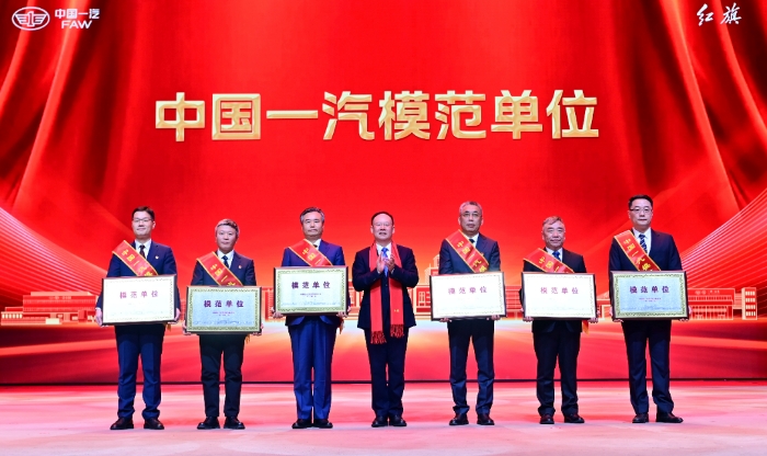 集團公司董事長、黨委書記邱現(xiàn)東為“中國一汽模范單位”頒獎