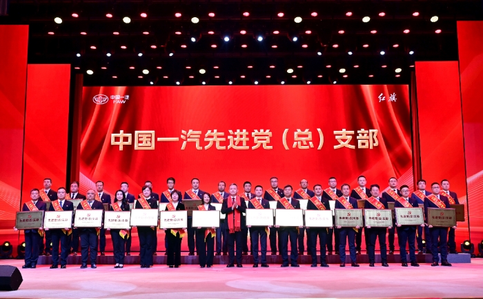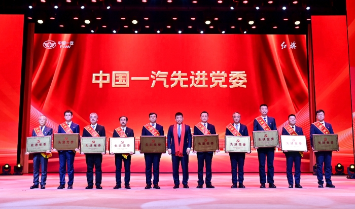 集團公司總經(jīng)理、黨委副書記劉亦功為“中國一汽先進黨委”頒獎