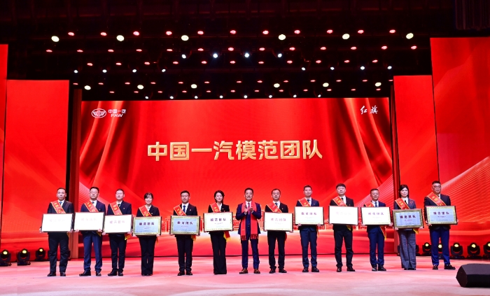 集團公司黨委常委、副總經(jīng)理陳彬為“中國一汽模范團隊”頒獎