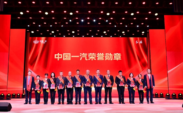 集團公司總經(jīng)理助理兼紅旗品牌運營委員會副總裁門欣,紅旗品牌運營委員會副總裁蔣文虎為“中國一汽榮譽勛章”榮譽獲得者頒獎