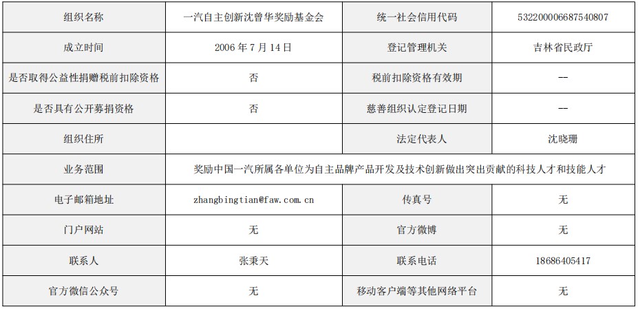 《一汽自主創(chuàng)新沈曾華獎勵基金會章程》
