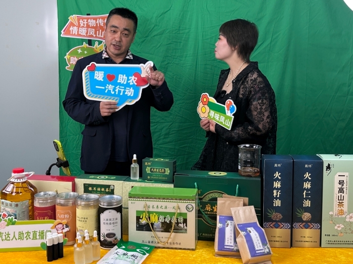 來源:黨委工作部社會責(zé)任室2025年5月底,一場成都與鳳山相結(jié)合的直播在線上進行著,來自一汽物流(成都)有限公司的達人團隊深入中國一汽定點幫扶的廣西鳳山縣農(nóng)產(chǎn)品生產(chǎn)基地,聯(lián)動鳳山縣電商平臺及一汽物流(成都)有限公司新媒體賬號,共同開展直播帶貨,銷售山茶油、火麻、茶葉等特色農(nóng)產(chǎn)品。累計4小時的兩場直播,收獲點贊量超2萬,銷售額近5萬元。