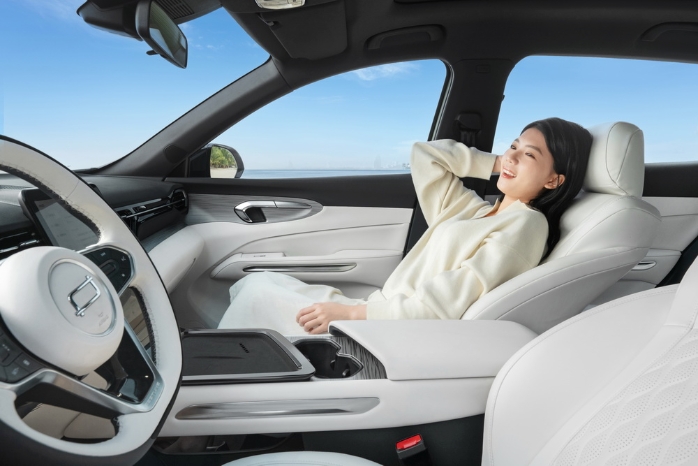 悅意07座艙搭載曜石黑、琥珀棕、靈芝白三款高定配色方案。其中,“靈芝白”內(nèi)飾以雪山晨霧為靈感,純凈白色的生物基皮革從座椅延伸至門板,與全景天幕構(gòu)成270°通透視覺。創(chuàng)新性采用的靈芝生物基皮革是在傳統(tǒng)皮革的基礎(chǔ)上,賦予其生物質(zhì)、低散發(fā)、靈芝香、愉悅、安靜、舒適、親膚等多功能性,是汽車內(nèi)飾聽感、觸感、嗅感、知感、體感、坐感等舒適性的具體體現(xiàn)。