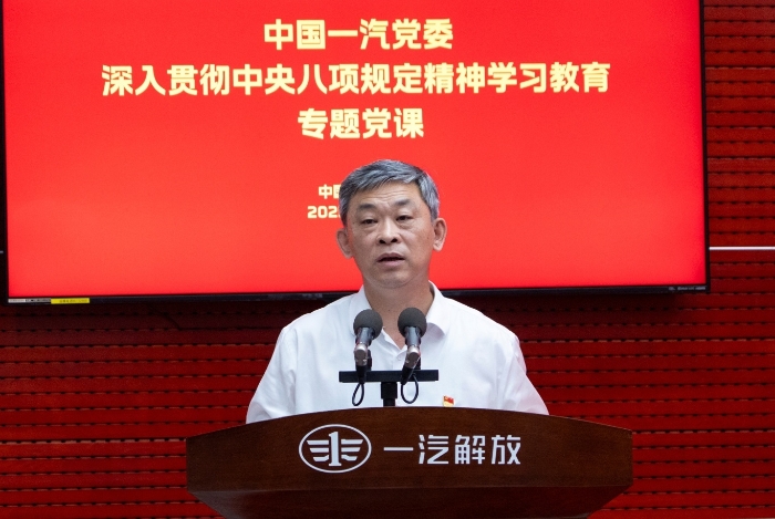 在紅旗制造中心繁榮廠區(qū),集團(tuán)公司黨委副書記梁貴友以“扎實(shí)推進(jìn)深入貫徹中央八項(xiàng)規(guī)定精神學(xué)習(xí)教育,以作風(fēng)建設(shè)新成效開創(chuàng)戰(zhàn)略轉(zhuǎn)型和高質(zhì)量發(fā)展新局面”為題講授專題黨課。梁貴友強(qiáng)調(diào),要準(zhǔn)確理解開展深入貫徹中央八項(xiàng)規(guī)定精神學(xué)習(xí)教育的重要意義,切實(shí)增強(qiáng)作風(fēng)建設(shè)思想自覺、行動自覺;要深刻領(lǐng)悟習(xí)近平總書記關(guān)于加強(qiáng)黨的作風(fēng)建設(shè)的重要論述,切實(shí)做到入腦入心、見行見效;要全面掌握中央八項(xiàng)規(guī)定及其實(shí)施細(xì)則精神的實(shí)踐要求,持之以恒糾治“四風(fēng)”、凈化生態(tài);要從嚴(yán)從實(shí)推進(jìn)深入貫徹中央八項(xiàng)規(guī)定精神學(xué)習(xí)教育,切實(shí)推動作風(fēng)建設(shè)走深走實(shí)、常態(tài)長效,以過硬作風(fēng)和干事成事勁頭,為實(shí)現(xiàn)戰(zhàn)略轉(zhuǎn)型和高質(zhì)量發(fā)展,為把中國一汽建設(shè)成為世界一流移動出行科技公司提供堅(jiān)強(qiáng)作風(fēng)保障。
