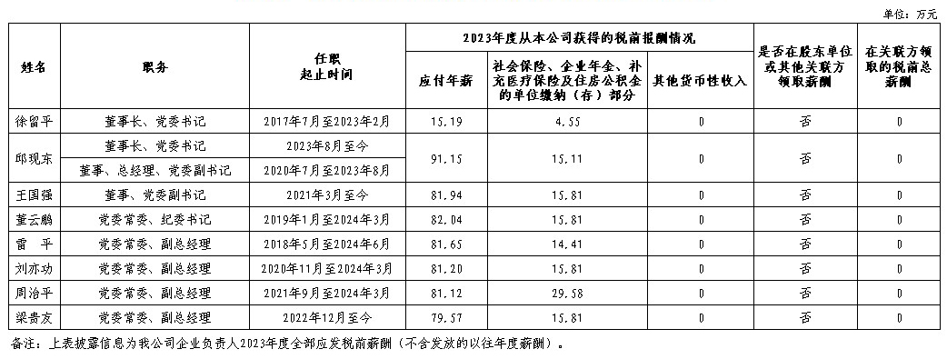 中國第一汽車集團(tuán)有限公司企業(yè)負(fù)責(zé)人2023年度薪酬情況