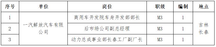 根據(jù)工作需要,現(xiàn)對一汽解放汽車有限公司部分高級經(jīng)理崗位面向社會公開招聘,具體內(nèi)容如下: