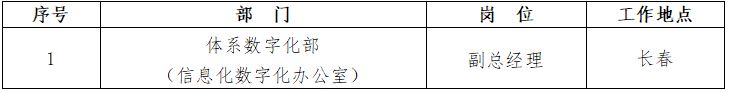 根據(jù)工作需要,現(xiàn)對(duì)體系數(shù)字化部(信息化數(shù)字化辦公室)副總經(jīng)理崗位面向社會(huì)公開(kāi)招聘,具體內(nèi)容如下: