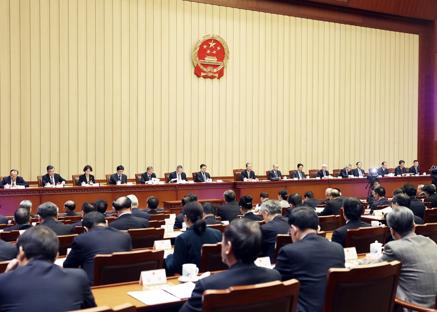 3月11日,十四屆全國人大二次會議主席團在北京人民大會堂舉行第四次會議。主席團常務主席趙樂際主持會議。 新華社記者 劉衛(wèi)兵 攝