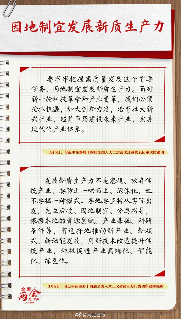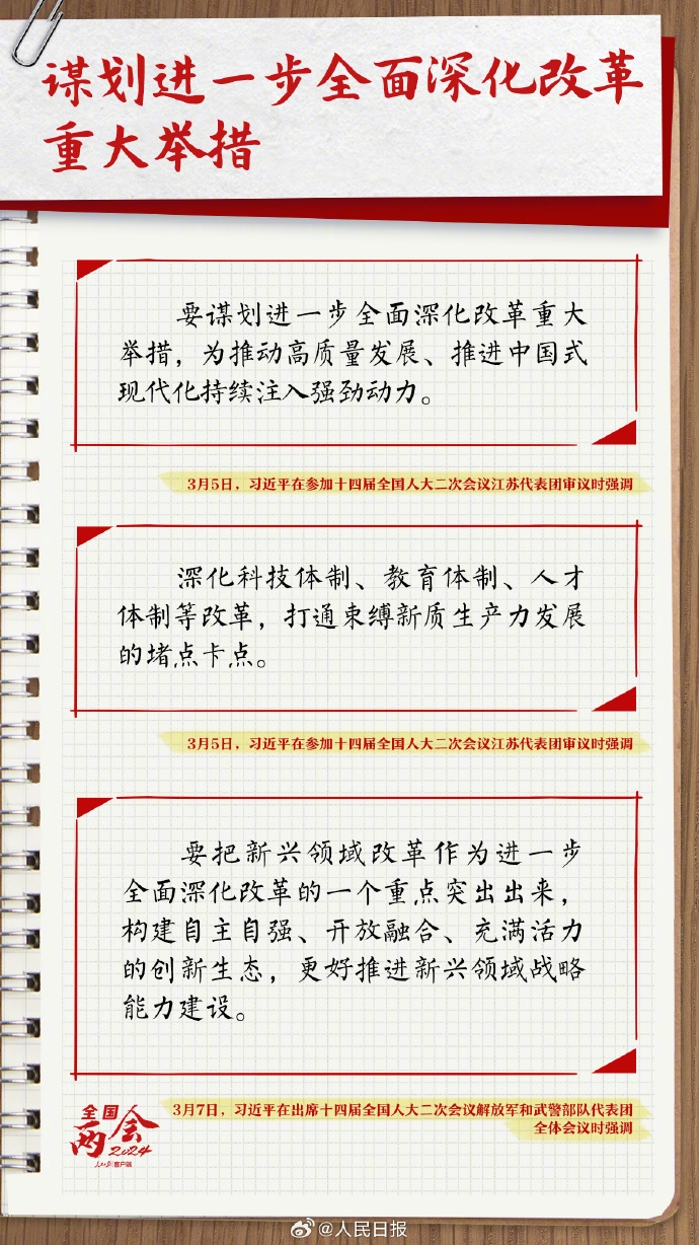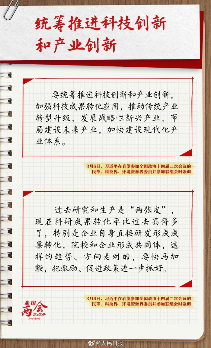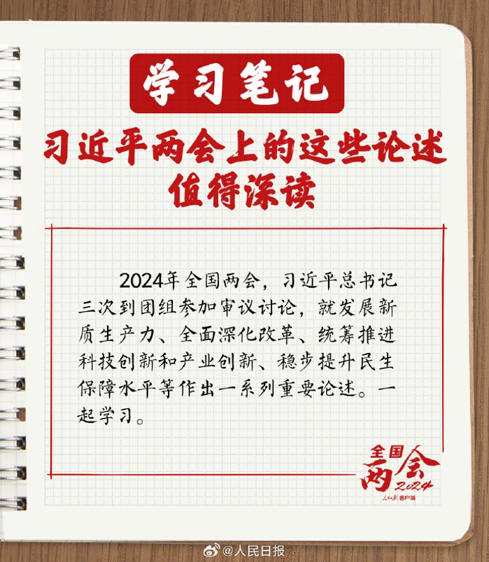 2024年全國(guó)兩會(huì),習(xí)近平總書(shū)記三次到團(tuán)組參加審議討論,就發(fā)展新質(zhì)生產(chǎn)力、全面深化改革、統(tǒng)籌推進(jìn)科技創(chuàng)新和產(chǎn)業(yè)創(chuàng)新、穩(wěn)步提升民生保障水平等作出一系列重要論述。