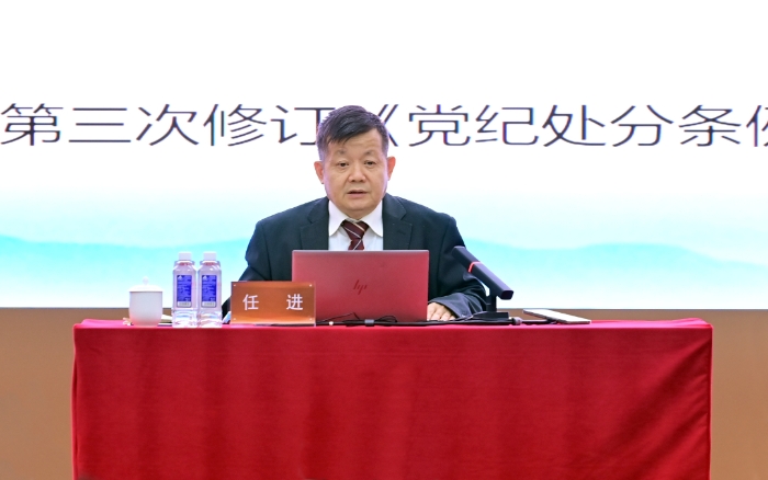 中央黨校(國家行政學院)政治法律部博士生導師任進以“深入學習貫徹新修訂的《中國共產黨紀律處分條例》”為題,從“《中國共產黨紀律處分條例》修訂的背景和主旨要義”“《中國共產黨紀律處分條例》規(guī)定的主要違紀行為及其處分”“貫徹執(zhí)行《中國共產黨紀律處分條例》需注意的若干問題”三個方面進行講解。