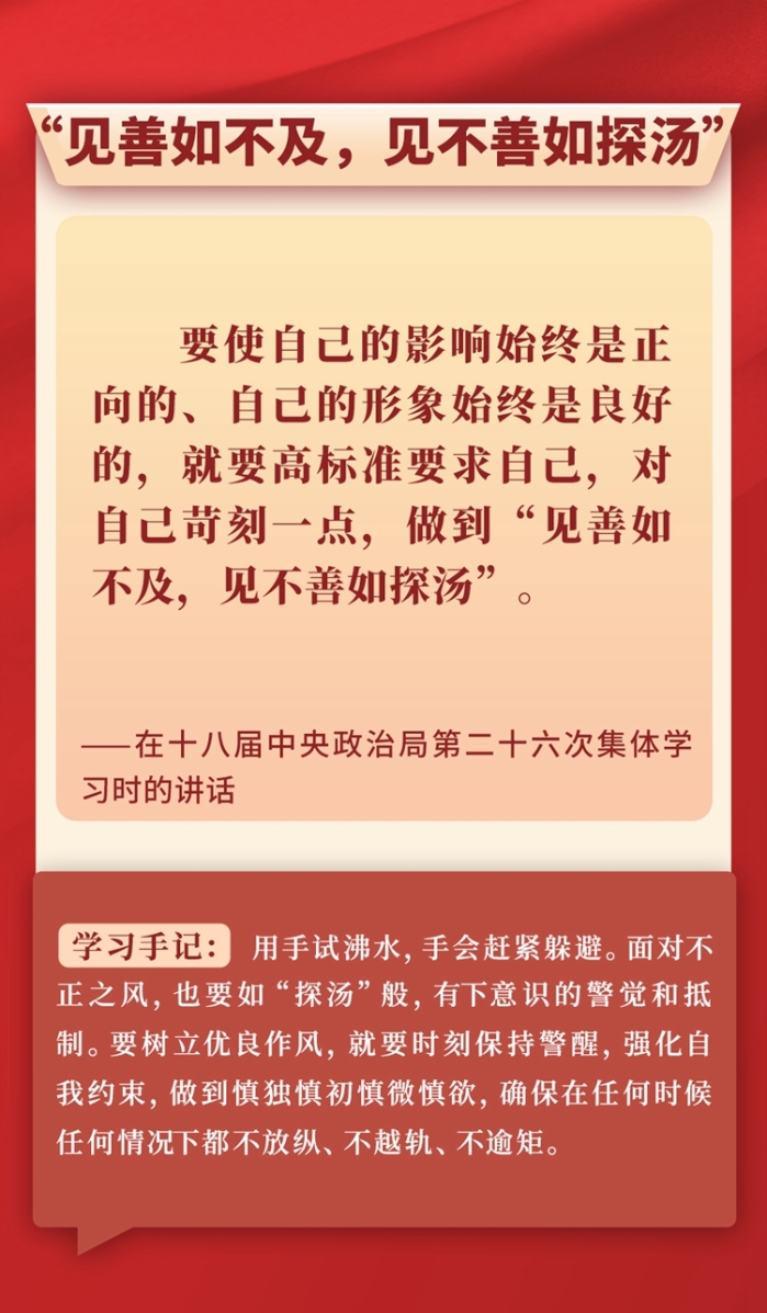 “問(wèn)渠那得清如許?為有源頭活水來(lái)。”關(guān)于作風(fēng)建設(shè),習(xí)近平總書記常引用各種古語(yǔ)典故,有的從警示層面講危害,有的從倡導(dǎo)層面談踐行,旁征博引、畫龍點(diǎn)睛,把古人智慧化用于作風(fēng)建設(shè)的當(dāng)代實(shí)踐,給人以思想啟迪、靈魂洗禮。