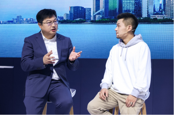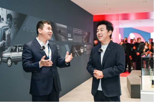 一汽-大眾捷達(dá)品牌銷售事業(yè)部負(fù)責(zé)人劉洪濤(左)和捷達(dá)車主葉先生(右)