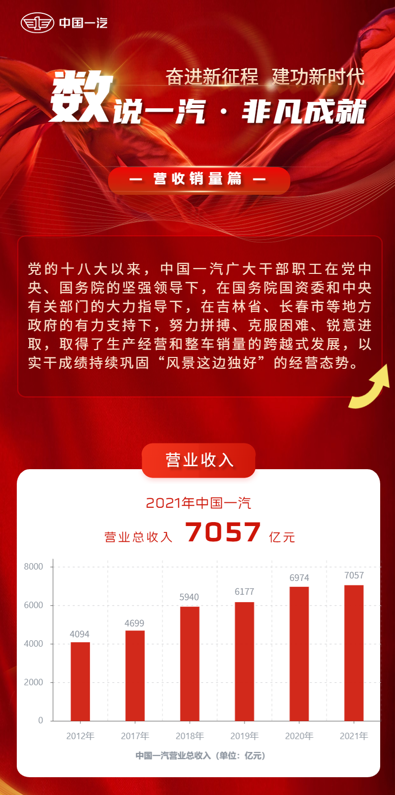 黨的十八大以來,中國(guó)一汽各個(gè)領(lǐng)域都取得了不俗的業(yè)績(jī),實(shí)現(xiàn)了又好又快的發(fā)展,努力捍衛(wèi)了“風(fēng)景這邊獨(dú)好”的發(fā)展勢(shì)頭。“數(shù)說一汽非凡成就”系列報(bào)道用數(shù)據(jù)說話,全方位、多角度展示十年來中國(guó)一汽各領(lǐng)域生機(jī)勃勃的發(fā)展進(jìn)程,回顧集團(tuán)公司取得的豐碩成果。