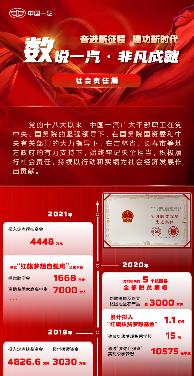 2020年7月23日,習(xí)近平總書記視察中國(guó)一汽,贊譽(yù)有加,矚望殷切,為中國(guó)一汽提升關(guān)鍵核心技術(shù)創(chuàng)新能力、做強(qiáng)民族汽車品牌、建設(shè)世界一流汽車企業(yè)指明了方向,提供了強(qiáng)大思想武器和行動(dòng)指南。兩年來,中國(guó)一汽廣大干部職工牢記總書記殷殷囑托,勠力同心、團(tuán)結(jié)奮斗,奮發(fā)有為、奮勇爭(zhēng)先,以行動(dòng)與實(shí)績(jī)呈交了一份完美的答卷!