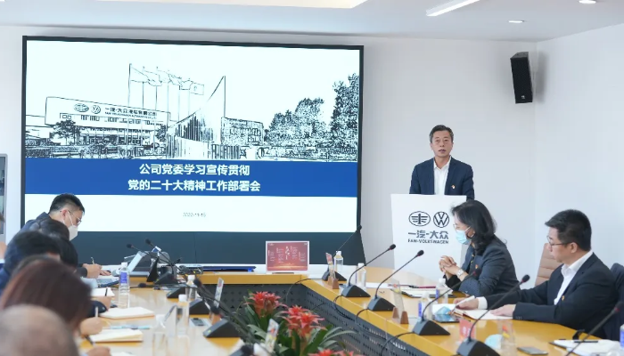 會議傳達(dá)了集團(tuán)公司黨委關(guān)于學(xué)習(xí)宣傳貫徹黨的二十大精神的工作要求,并從學(xué)習(xí)研討、專題培訓(xùn)、宣講交流、宣傳引領(lǐng)、全員貫徹、實踐落實六個方面對《一汽-大眾公司黨委學(xué)習(xí)宣傳貫徹黨的二十大精神工作方案》進(jìn)行說明、部署工作。