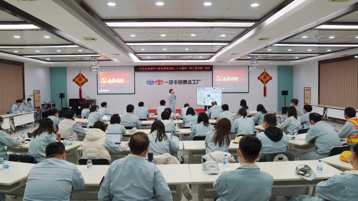 本網(wǎng)訊(特約記者 胡怡晴/文 李志鐵/攝影)近日,一汽豐田學(xué)習(xí)宣傳貫徹黨的二十大精神首場職工宣講團(tuán)報(bào)告會在泰達(dá)工廠第三總裝課開講,一汽豐田各單位黨群部長、專兼職宣傳干事、青年團(tuán)員、員工代表50余人聆聽報(bào)告會。
