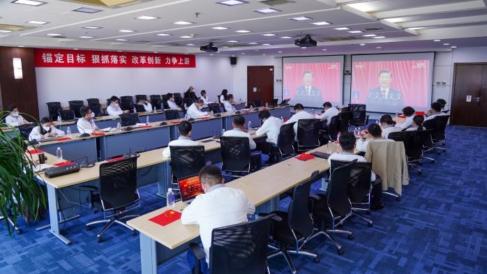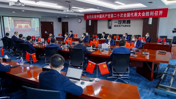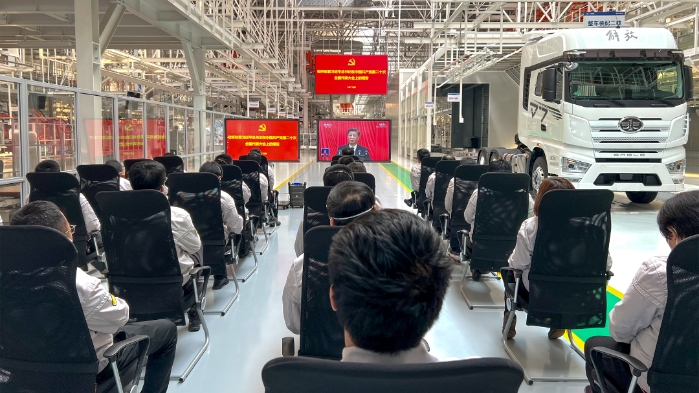 在中國一汽總部會(huì)場,中國一汽黨委領(lǐng)導(dǎo)班子成員,總經(jīng)理助理,總部職能部、研發(fā)總院負(fù)責(zé)人等集中收看。大家聚精會(huì)神聆聽,專心致志記錄。
