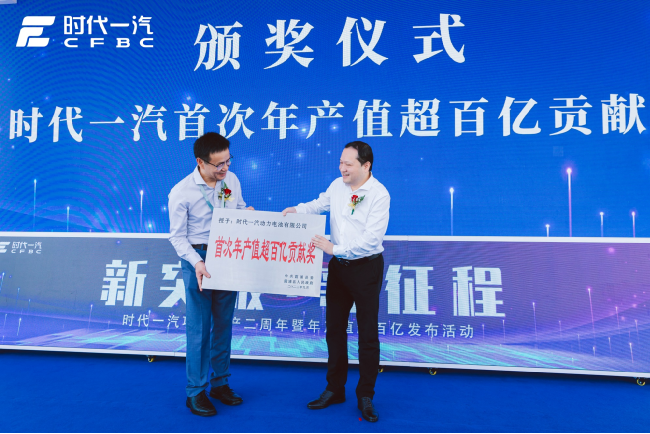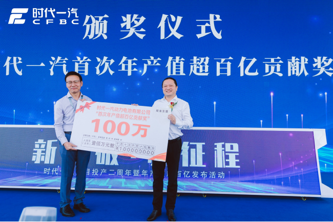 9月21日,時(shí)代一汽動(dòng)力電池有限公司“投產(chǎn)兩周年暨年產(chǎn)值超百億”發(fā)布儀式在寧德市霞浦縣舉行,霞浦縣授予時(shí)代一汽 “首次年產(chǎn)值超百億貢獻(xiàn)獎(jiǎng)”。寧德市委書記梁偉新、寧德市長(zhǎng)張永寧,寧德時(shí)代副董事長(zhǎng)周佳,一汽股權(quán)公司總經(jīng)理馮小東,東風(fēng)智新科技副總經(jīng)理?xiàng)钍匚洹㈤L(zhǎng)安新能源戰(zhàn)略市場(chǎng)部副總經(jīng)理陳立華,時(shí)代一汽總經(jīng)理朱云峰出席活動(dòng)。寧德市委副書記楊方,時(shí)代一汽總經(jīng)理朱云峰發(fā)表致辭,中國(guó)一汽董事、黨委副書記、時(shí)代一汽董事長(zhǎng)王國(guó)強(qiáng)發(fā)表視頻致辭。